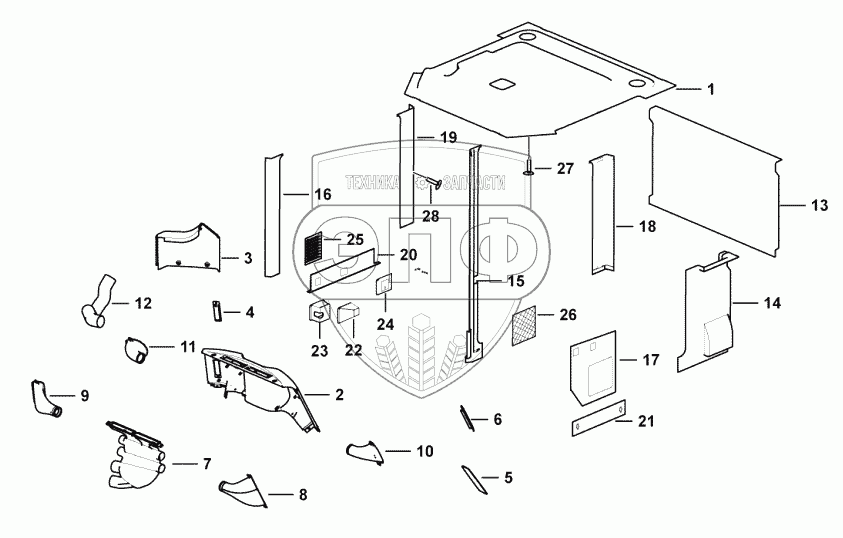 Каталог запасных частей к технике: SDLG LG956L. Trim panel assembly