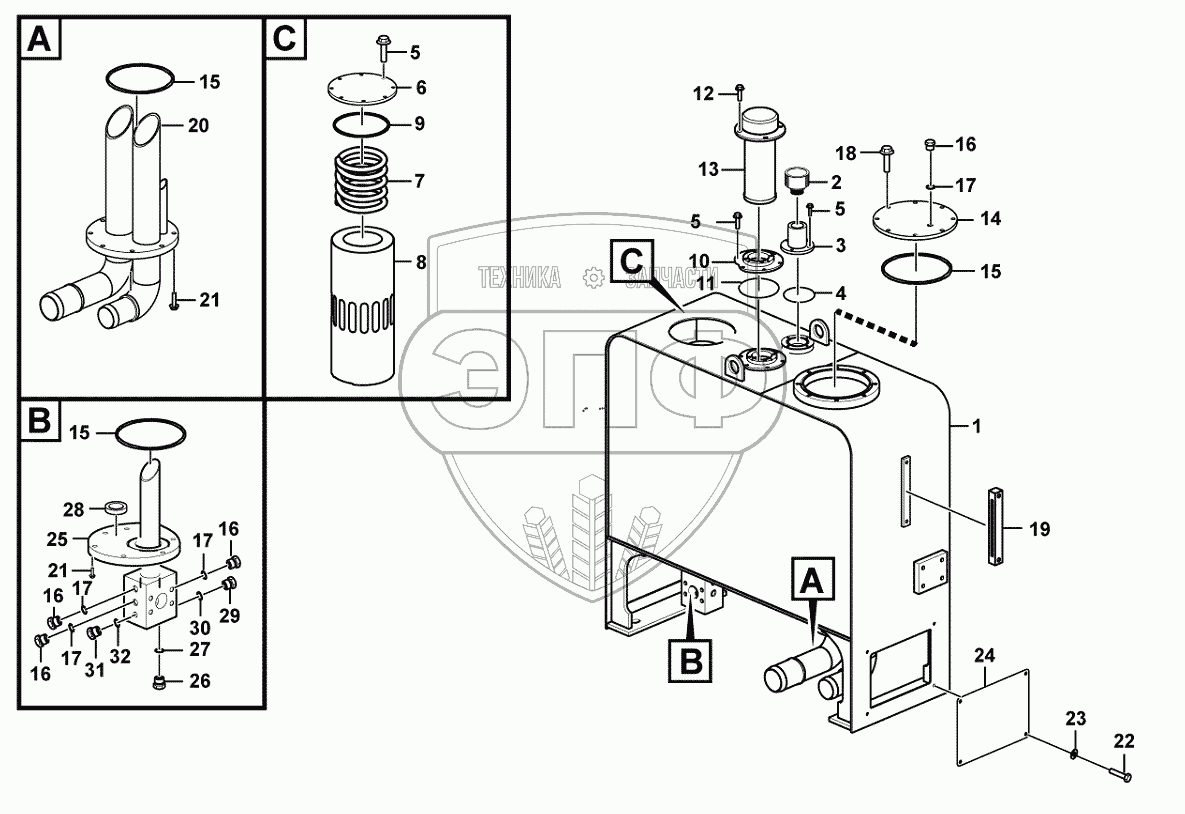 | 1 | 29100028241 | Hydraulic fluid tank | Нет на складе | |