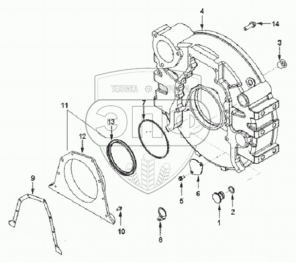 Каталог запасных частей к технике: SDLG LG958L. HOUSING, FLYWHEEL FH 9464