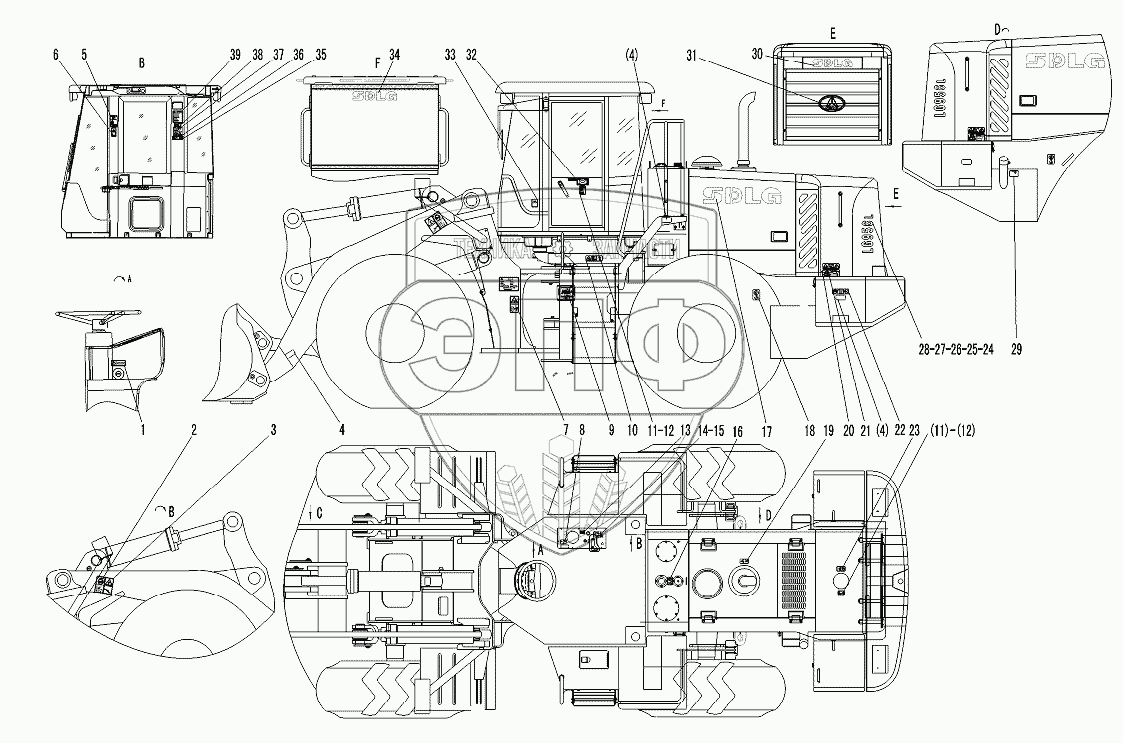 Каталог запасных частей к технике: SDLG LG958L. SIGN AND LOGO