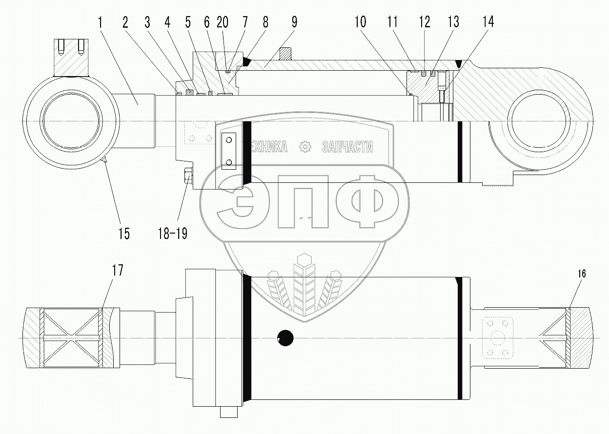 Каталог запасных частей к технике: SDLG LG958L. TILT CYLINDER (371368)