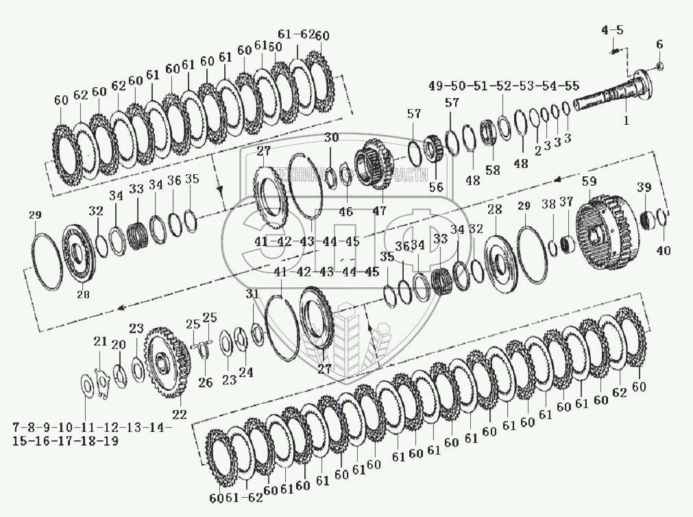Каталог запасных частей к технике: SDLG LG958N. First gear assembly C7-4110000042