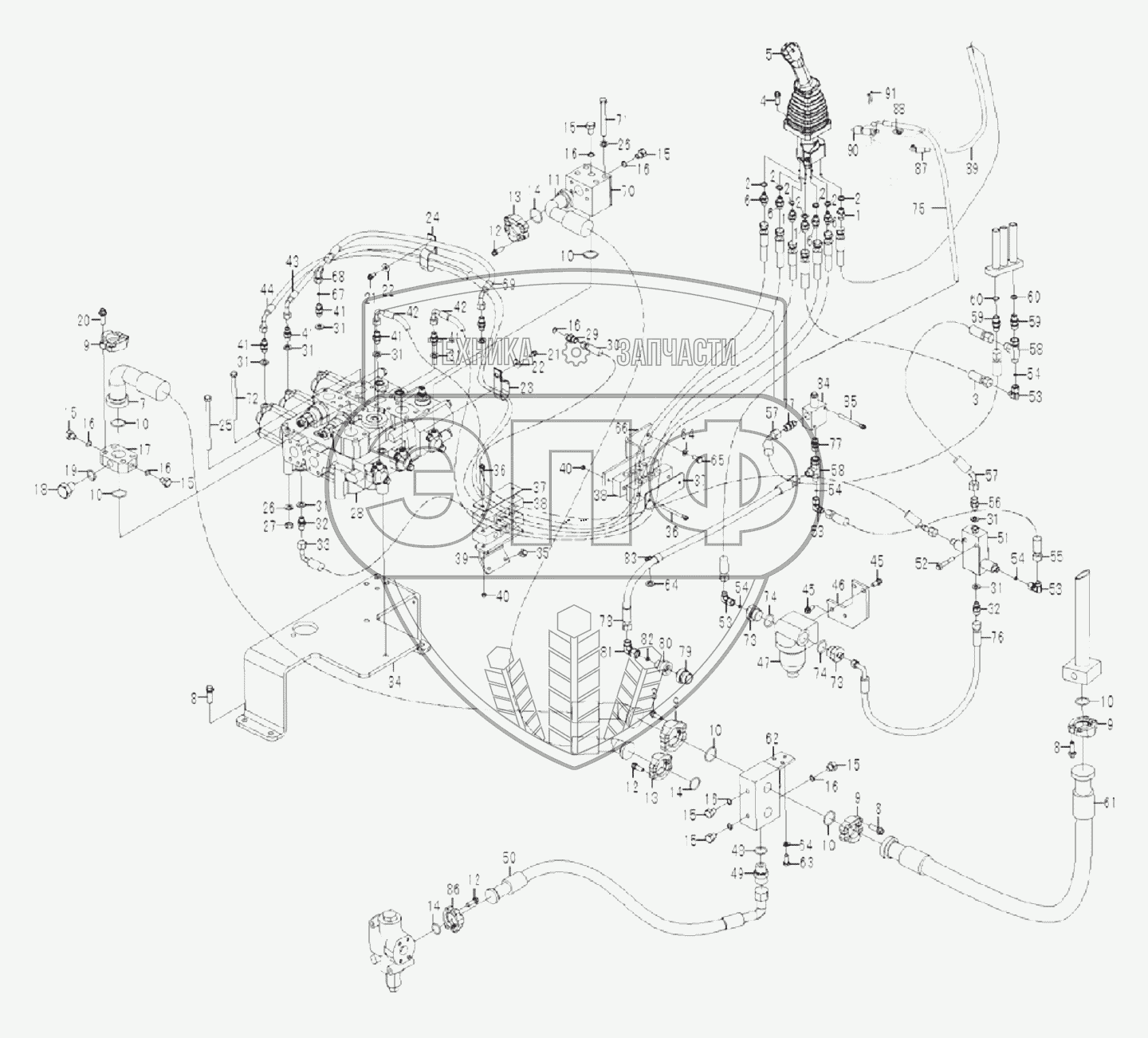 Каталог запасных частей к технике: SDLG LG958N. Hydraulic control assembly F1-2912002295