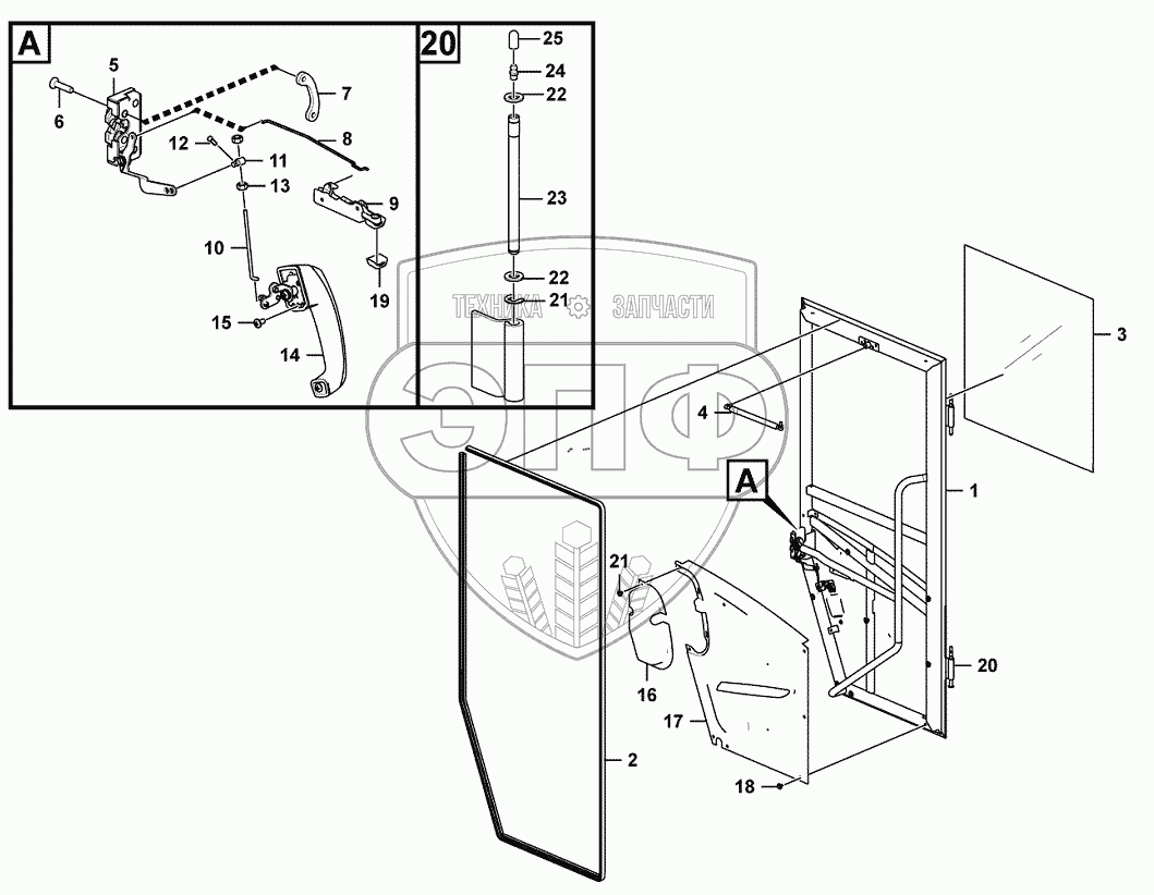 Каталог запасных частей к технике: SDLG LG969N. Door assembly