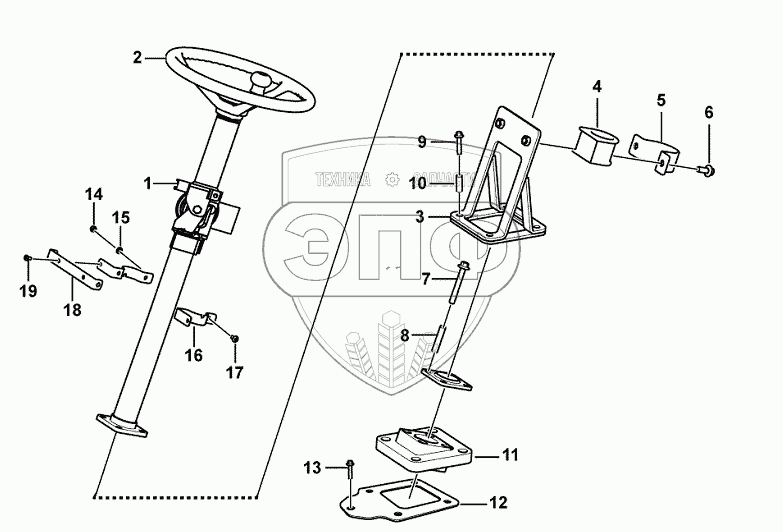 Каталог запасных частей к технике: SDLG LG969N. Steering column assembly