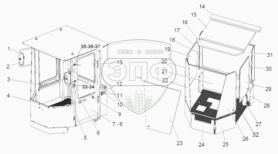 Каталог запасных частей к технике: SEM616B. Cab (sale)