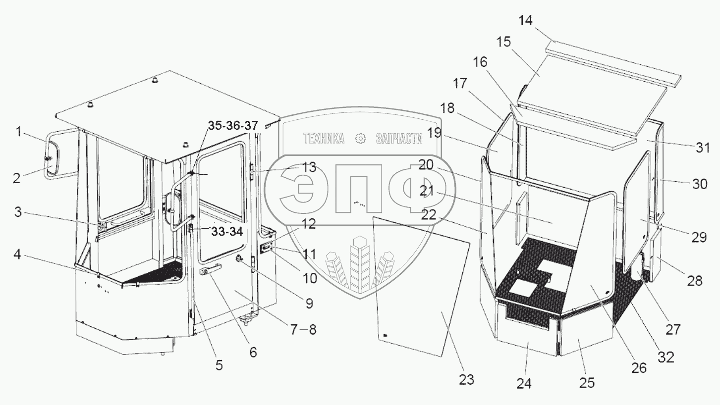 Каталог запасных частей к технике: SEM616B. Cab (sale)