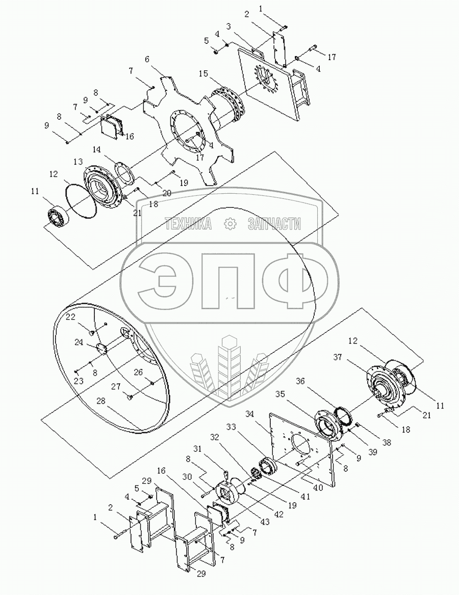 Каталог запасных частей к технике: Shantui Каток SR12-5. DRUM ASSEMBLY