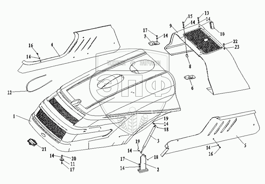 Каталог запасных частей к технике: Shantui Каток SR14M-2. HOOD ASSEMBLY