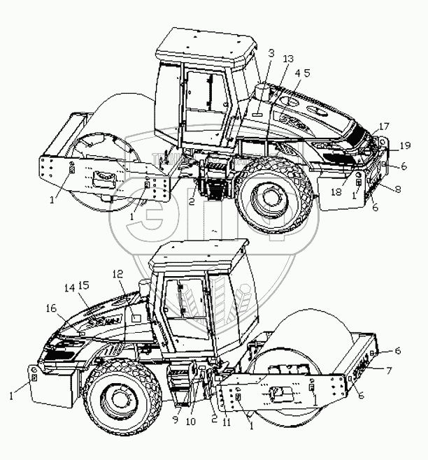 Каталог запасных частей к технике: Shantui Каток SR14M-2. LABEL PLATE LAYOUT