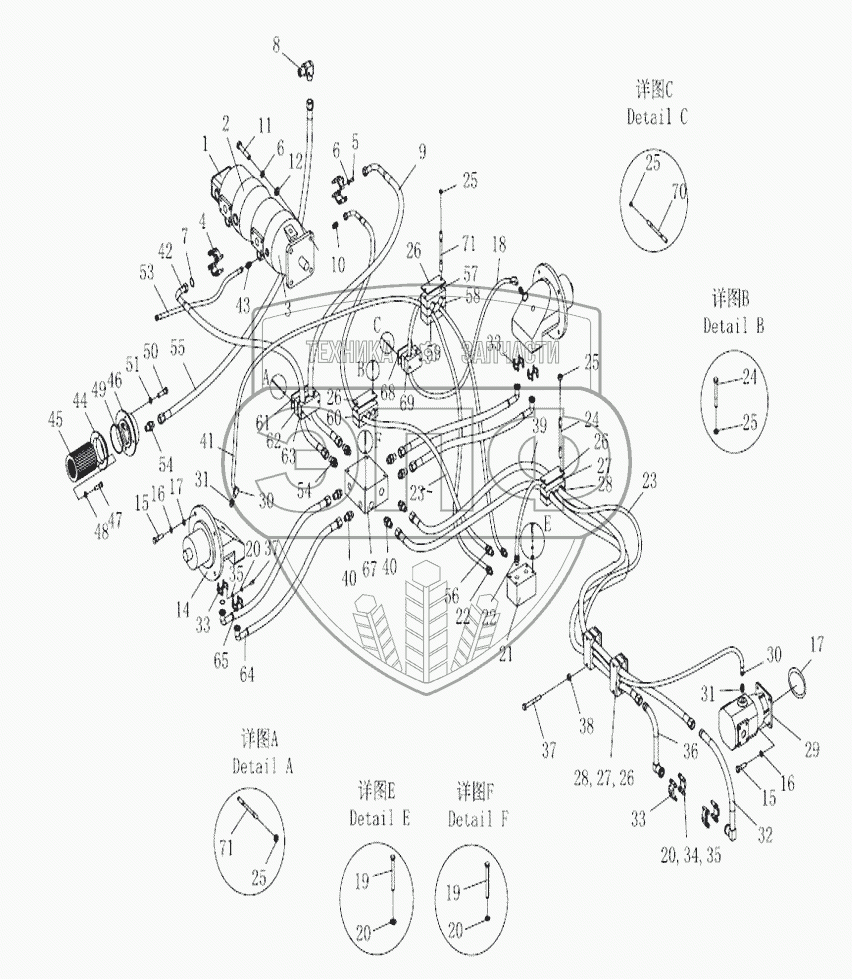 Каталог запасных частей к технике: Shantui Каток SR16. WALKING HYDRAULING SYSTEM