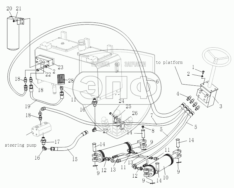 Каталог запасных частей к технике: Shantui Каток SR18M. HYDRAULIC STEERING SYSTEM