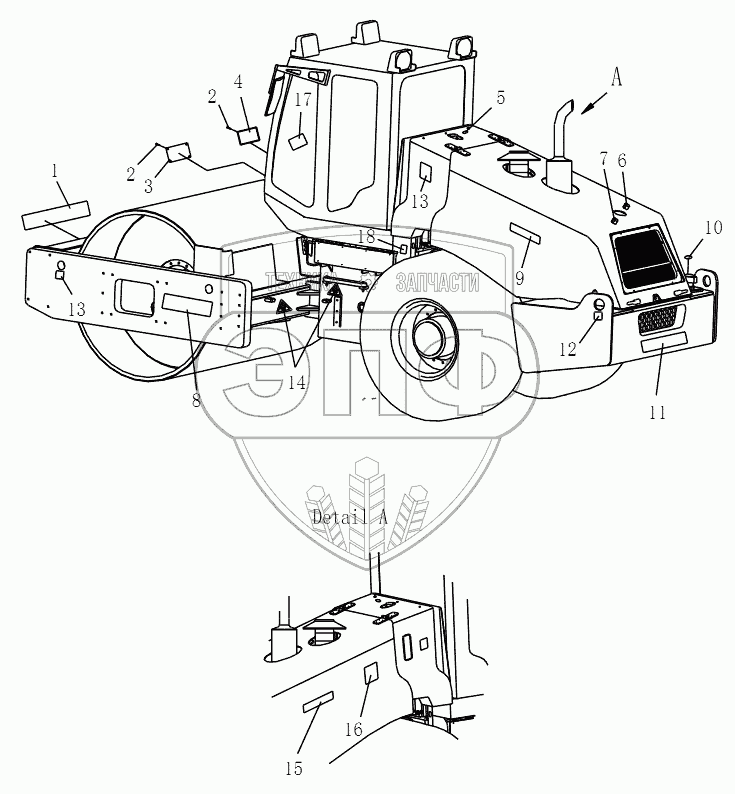Каталог запасных частей к технике: Shantui Каток SR18M. MARKS AND PLATES