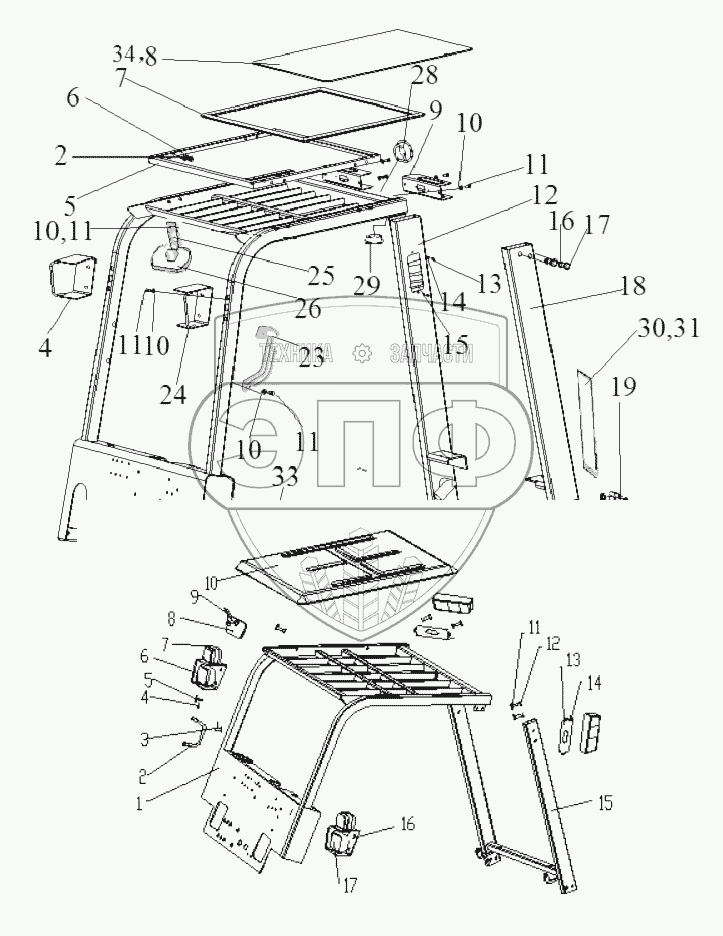 Каталог запасных частей к технике: Shantui Погрузчик SF15, SF18. DRIVE CANOPY