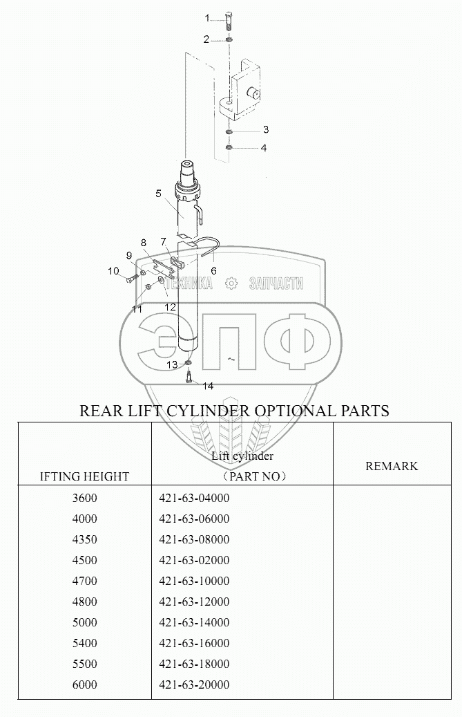 Каталог запасных частей к технике: Shantui Погрузчик SF15, SF18. REAR LIFT CYLINDER
