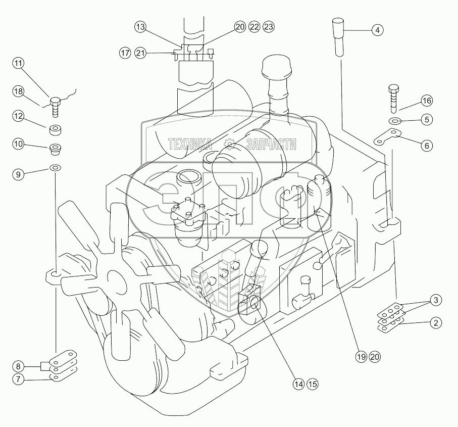 Каталог запасных частей к технике: Shantui SD16L. WD10 ENGINE MOUNTING AND ATTACHMENT