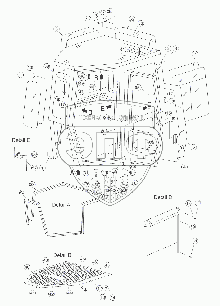 Каталог запасных частей к технике: Shantui SD22 (вариант). CAB ASSEMBLY