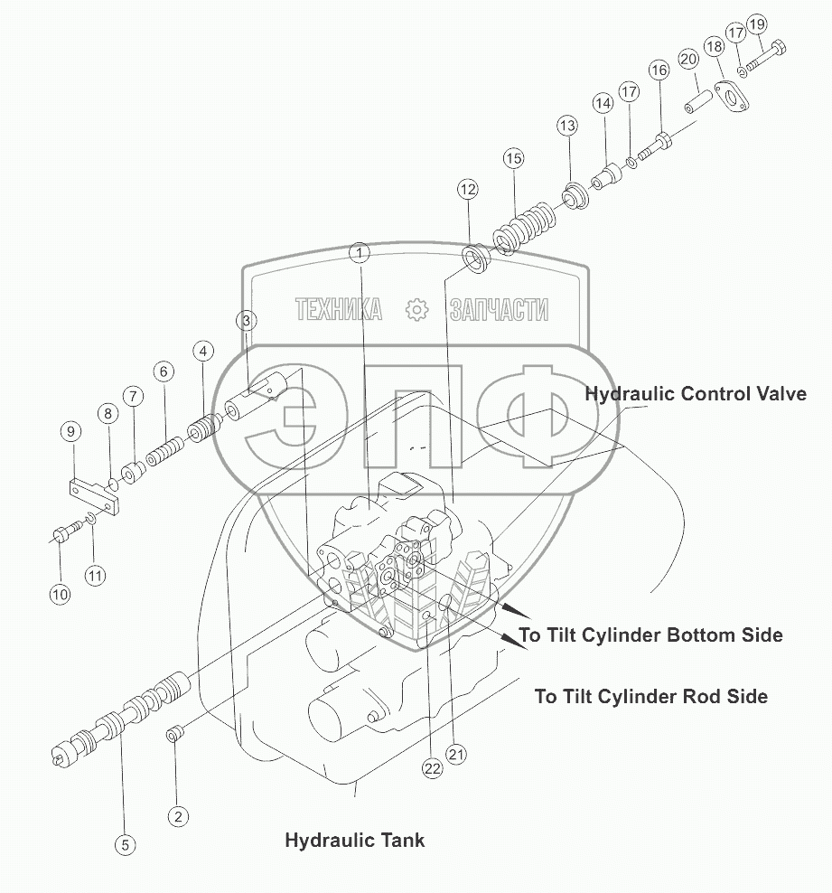 Каталог запасных частей к технике: Shantui SD32 (вариант). TILT OIL CYLINDER CONTROL VALVE ASSY