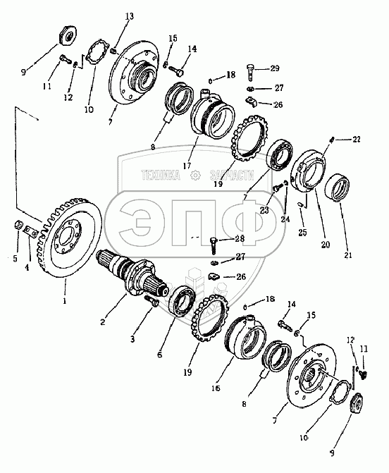 Каталог запасных частей к технике: Shantui SD16. Передача зубчатая коническая и вал