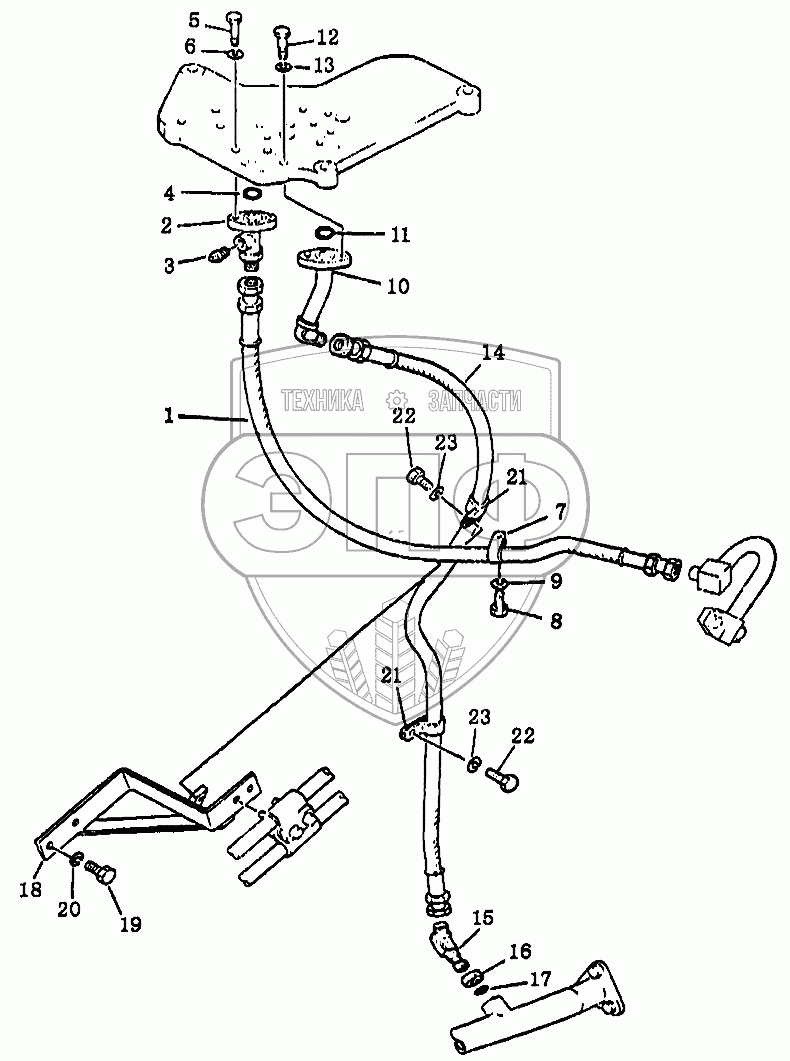 Каталог запасных частей к технике: Shantui SD22. Гидросистема рыхлителя с одиночной стойкой