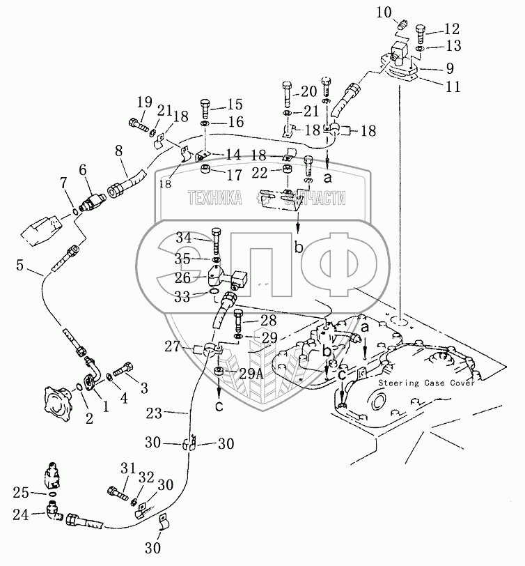 Каталог запасных частей к технике: Shantui SD23 (вариант). STEERING PIPING (3/3)