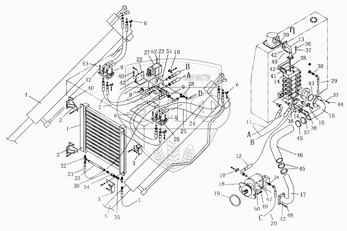Каталог запасных частей к технике: Shantui SD42-3. PUMP & BLADE LIFT PIPING ASSY