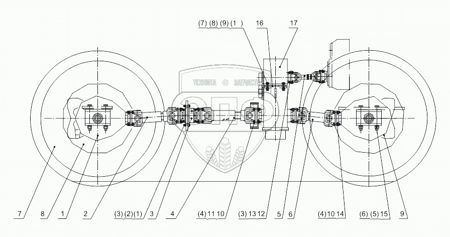 Каталог запасных частей к технике: Shantui SL-30W. Driving shaft and driving axle