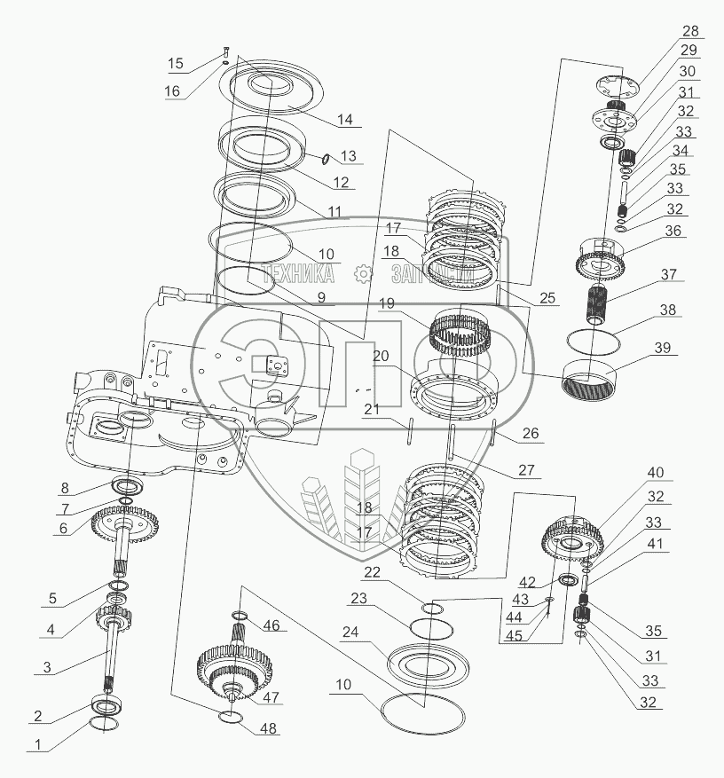 Каталог запасных частей к технике: Shantui SL-50W. GEARBOX ASSEMBLY 2 (370801)