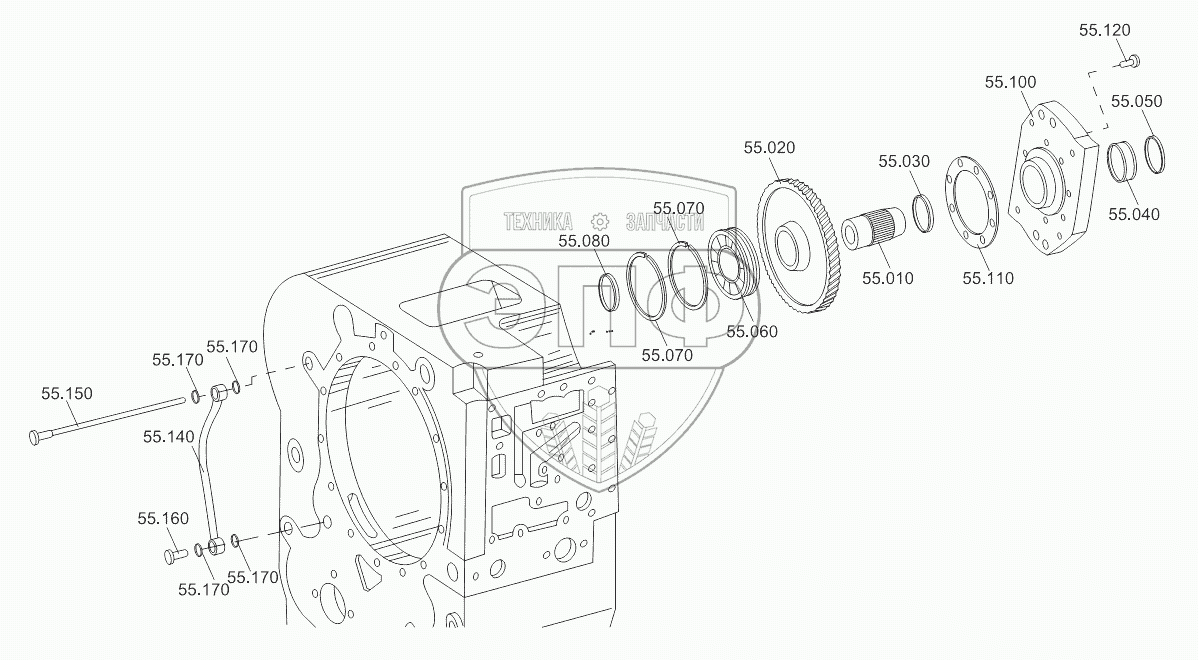 Каталог запасных частей к технике: Shantui SL-50W. GEARBOX PTO PART 2 4WG180