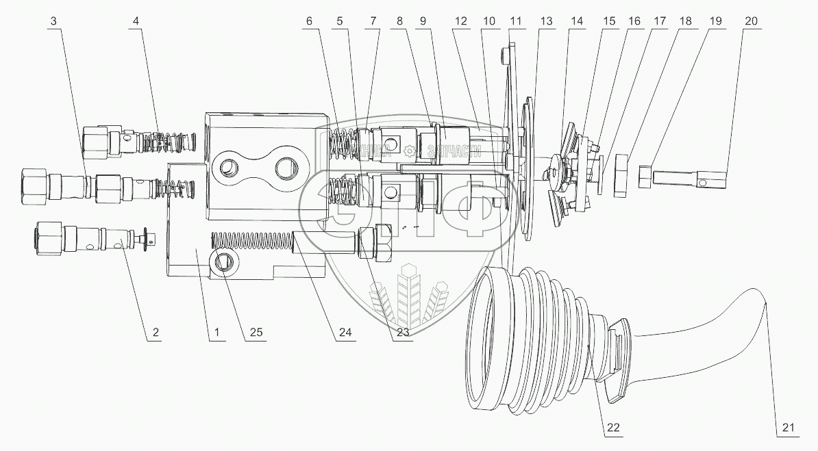 Каталог запасных частей к технике: Shantui SL-50W. SINGLE HANDLE PILOT VALVE