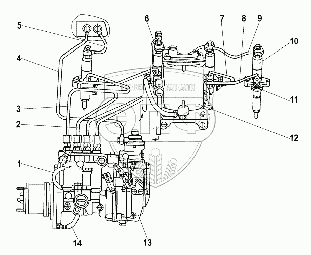 Каталог запасных частей к технике: ТТМ-3902 "Тайга". Топливопроводы и установка топливной аппаратуры