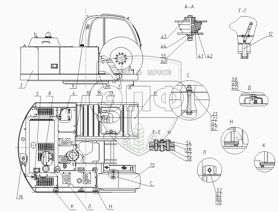 Каталог запасных частей к технике: ТВЭКС 5846ТМ (ЕА17). Платформа поворотная с механизмами