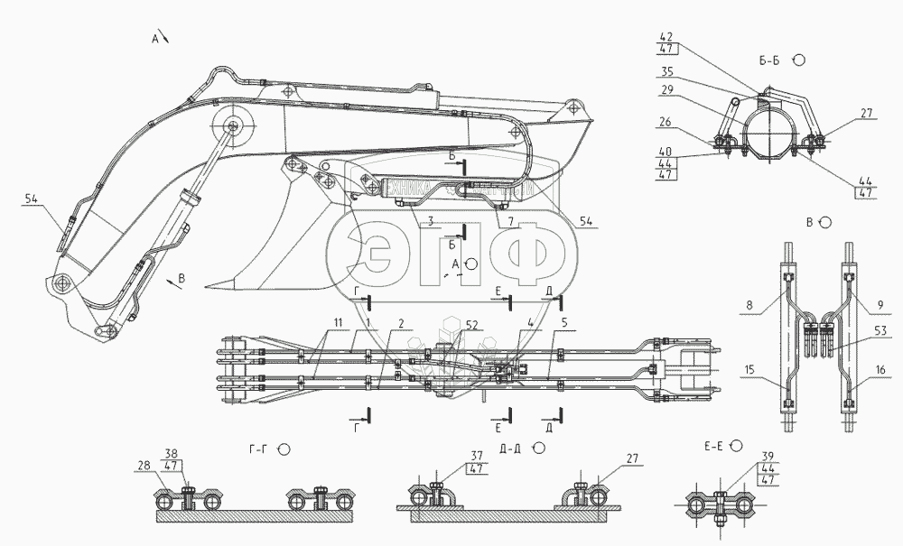 Каталог запасных частей к технике: ТВЭКС 5846ТМ (ЕА17). Трубопроводы рабочего оборудования