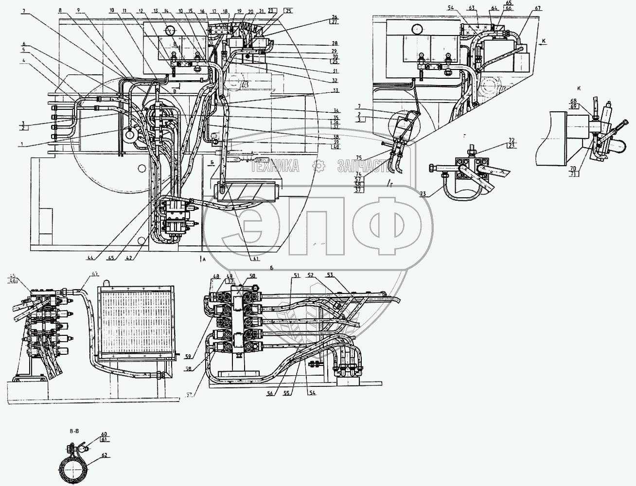Каталог запасных частей к технике: ТВЭКС ЕК-12. Трубопроводы на поворотной платформе