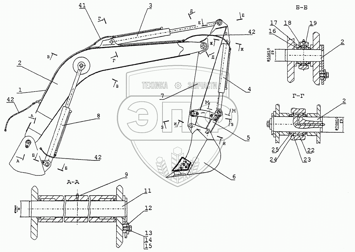 Каталог запасных частей к технике: ТВЭКС ЕК-14. Рабочее оборудование обратной лопаты