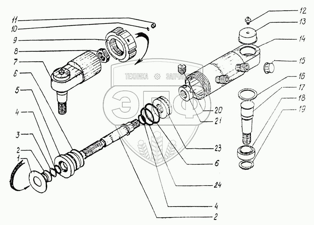 Каталог запасных частей к технике: ТВЭКС ЕК-14. Цилиндр поворота колес