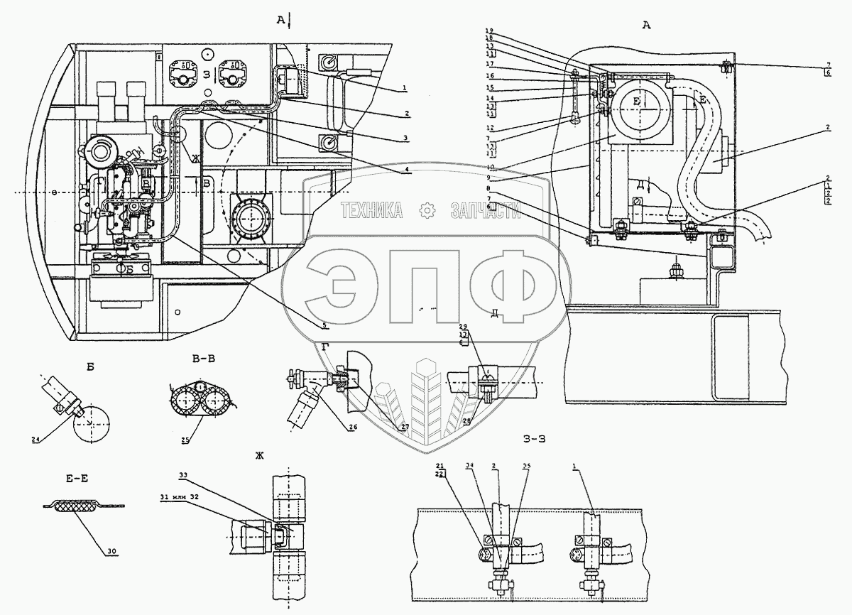 Каталог запасных частей к технике: ТВЭКС ЕК-14. Установка отопителя