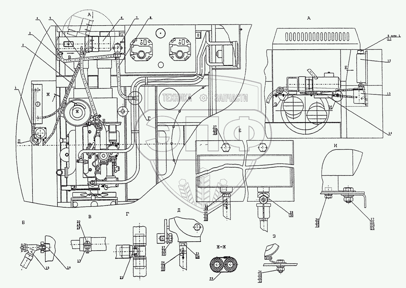 Каталог запасных частей к технике: ТВЭКС ЕК-14. Установка подогревателя