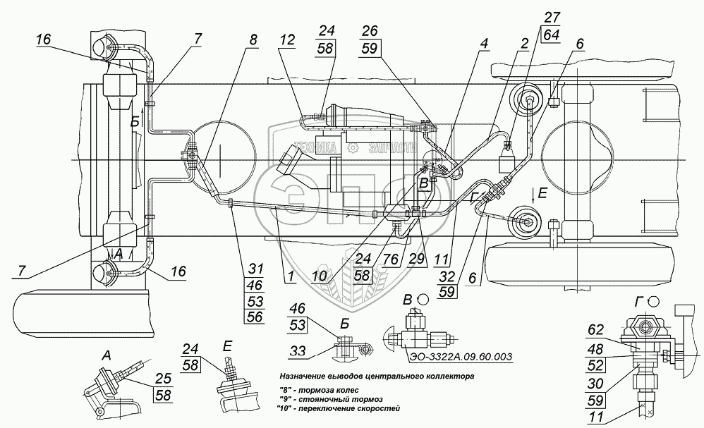 Каталог запасных частей к технике: ТВЭКС ЕК-18 (2008). Пневмоуправление на ходовой раме