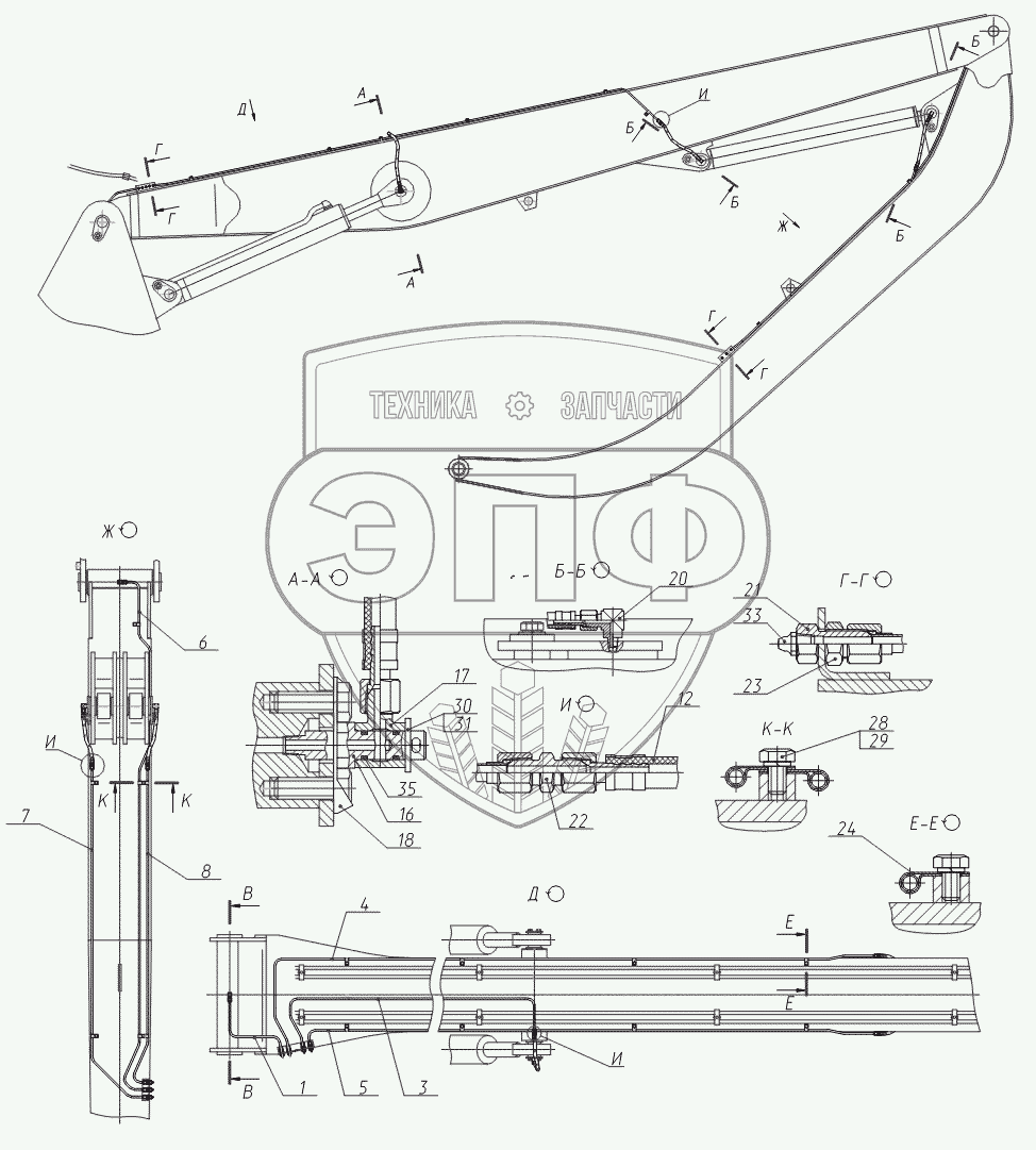 Каталог запасных частей к технике: ТВЭКС ЕК-18 (2008). Трубопроводы централизованной смазки