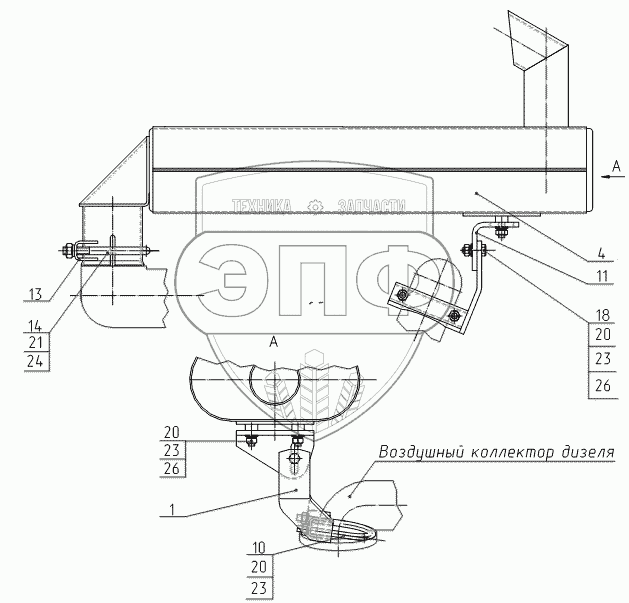 Каталог запасных частей к технике: ТВЭКС ЕК-18 (2008). Установка глушителя