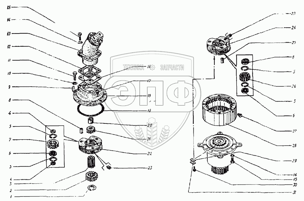 Каталог запасных частей к технике: ТВЭКС ЭО-3122. Механизм поворота