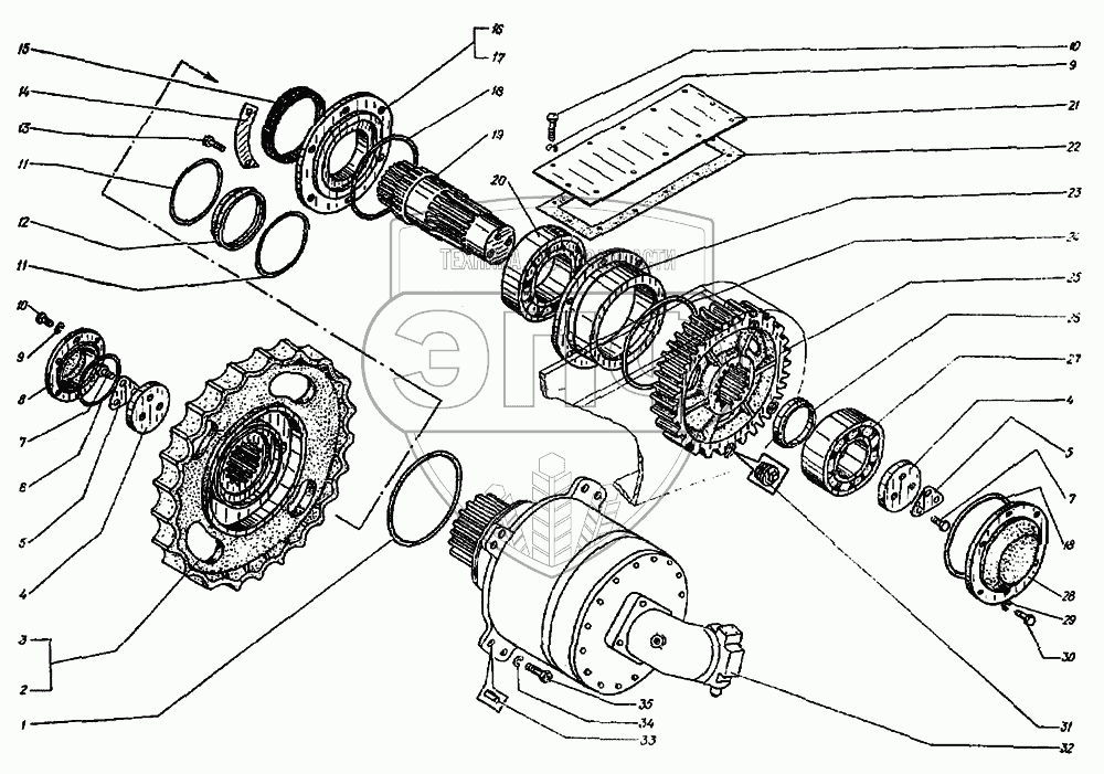 Каталог запасных частей к технике: ТВЭКС ЭО-3122. Привод гусеницы правый