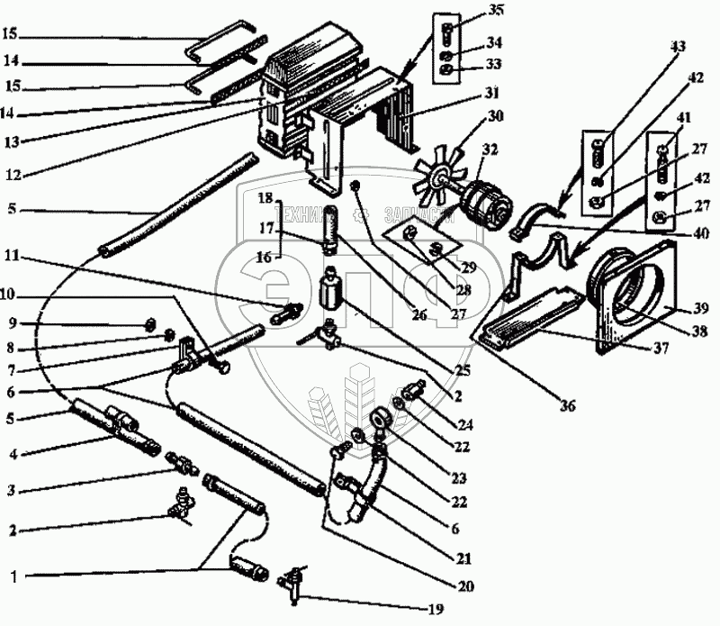 Каталог запасных частей к технике: ТВЭКС ЭО-3323. Установка отопителя