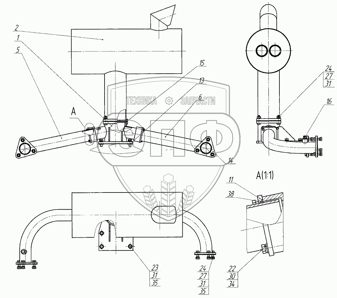 Каталог запасных частей к технике: ТВЭКС ЕТ-26i. 262.42.05.000 Установка глушителя