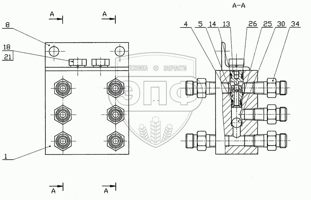 Каталог запасных частей к технике: ТВЭКС ЕТ-26i. 004029000040 00 Блок клапанов «или»