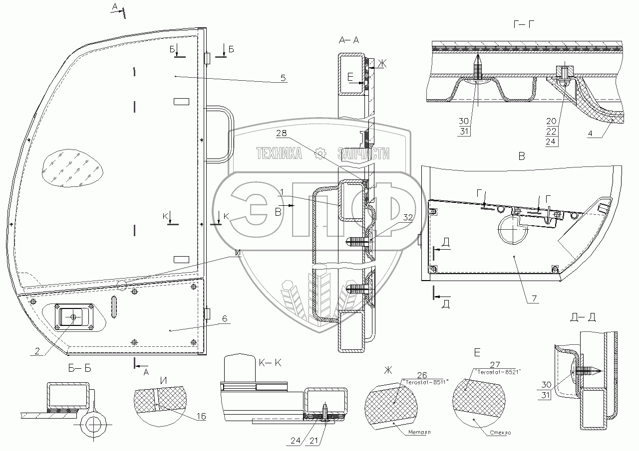 Каталог запасных частей к технике: ТВЭКС ЕТ-26i. 312200240000 00 Дверь в сборе