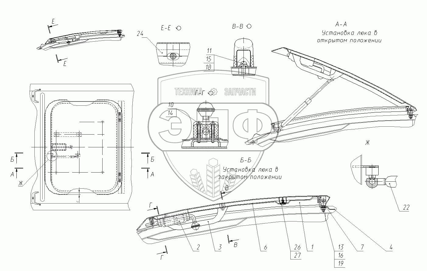 Каталог запасных частей к технике: ТВЭКС ЕТ-26i. 312200250000 00 Установка люка