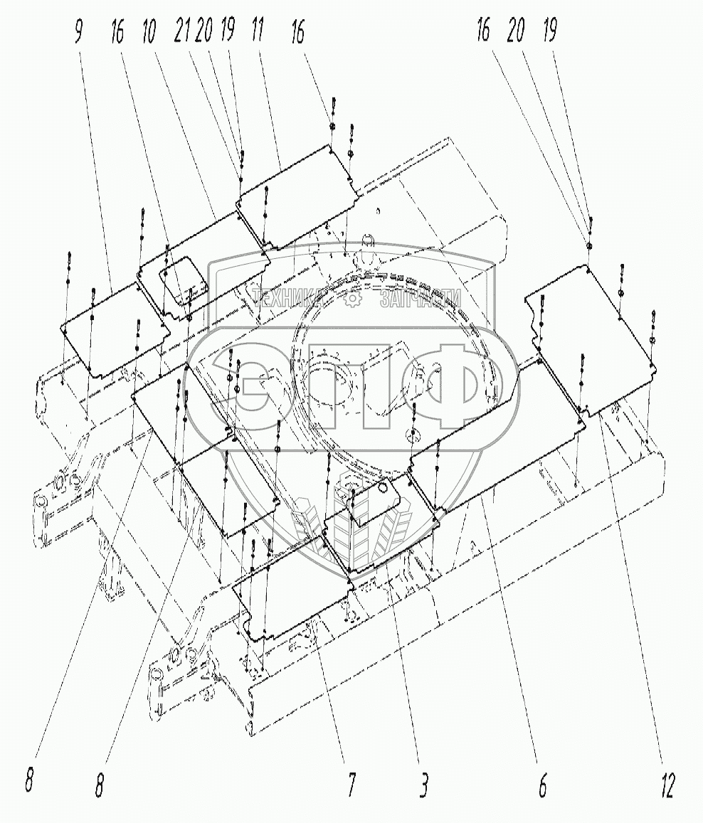 Каталог запасных частей к технике: ТВЭКС ТХ-210. 202130000000 01 Установка поддонов