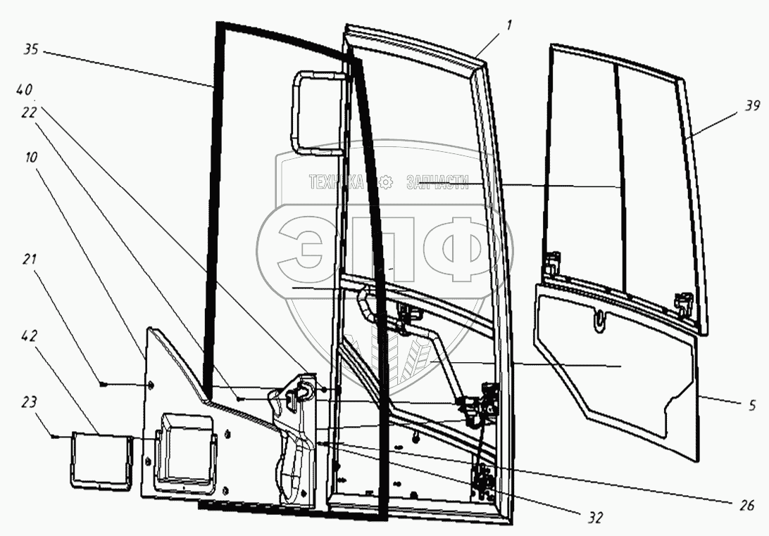 Каталог запасных частей к технике: ТВЭКС ТХ-210. 202020120000 00 Дверь в сборе